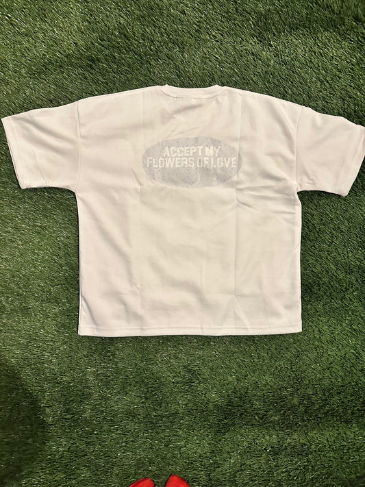 (WHITE ACCEPT MY FLOWERS OF LOVE BOXY TEE)